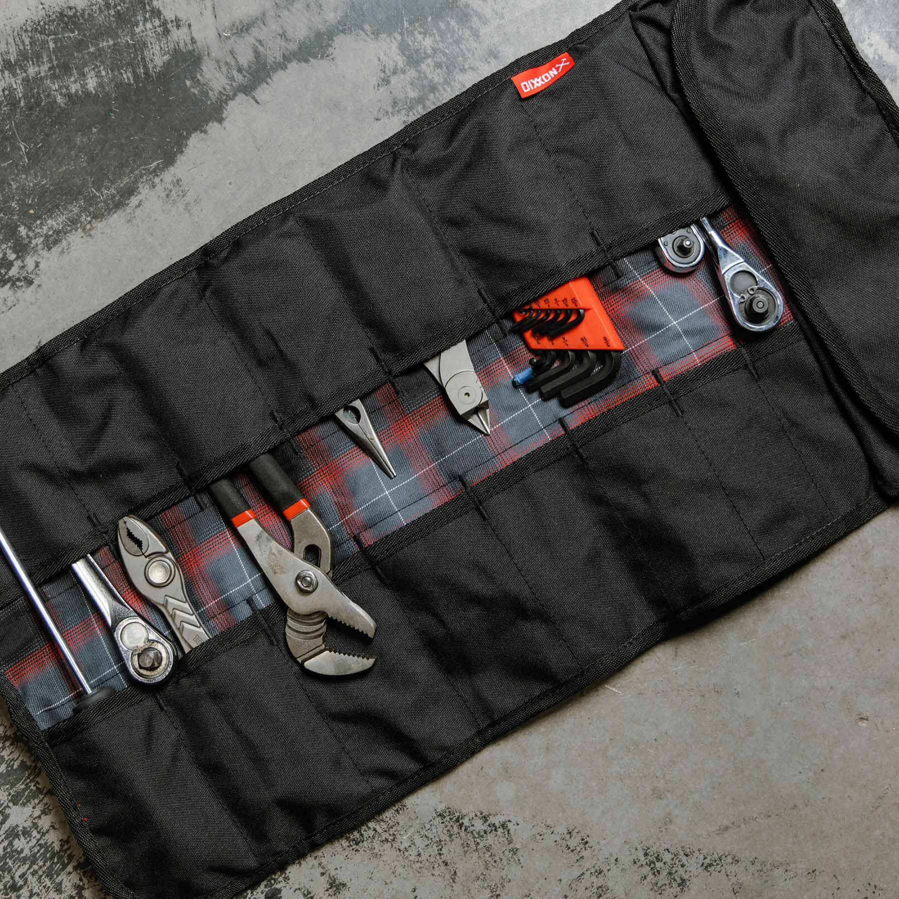 From your bike to your SxS, the Howley Tool Roll is compact, durable, and ready to ride. It features 18 slip-in pockets of varying sizes, three large end pockets, and a dual side release buckle closure. Made of weather-resistant canvas that shrugs off light rain, this beauty easily fits in your saddle-bag, UTV, or truck to keep tools organised on the go.