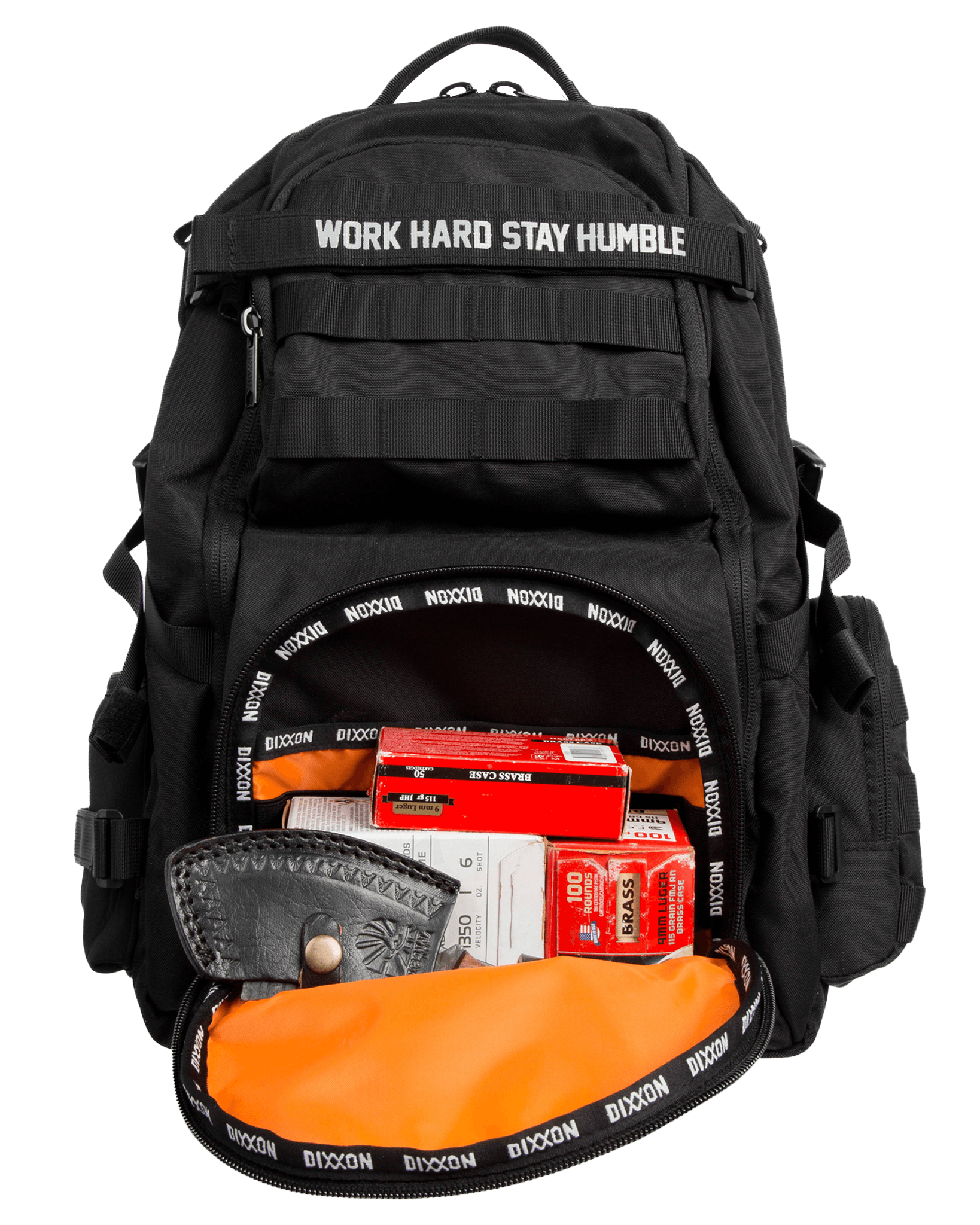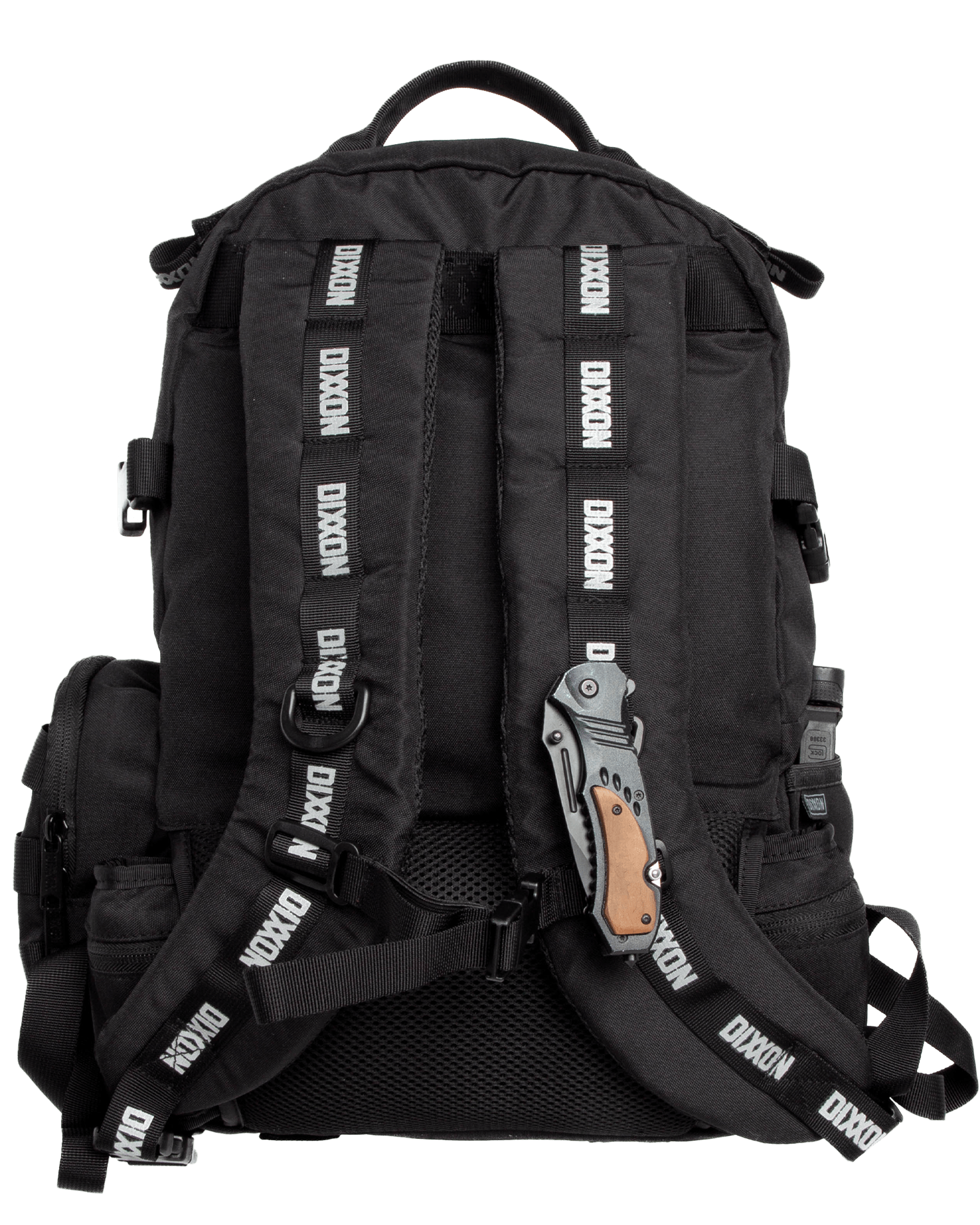 Featuring an enhanced design to aid in comfort, durability, and all-day mobility, the Tactical Backpack is the only backpack you will ever need for your rugged, action-packed lifestyle. This no-nonsense bag is constructed of a high-density polyester and includes a chest strap and buckle to keep your bag secure during movement. Reinforced webbing in the shoulder straps means you have increased durability and weight load, while a padded bottom helps to protect your goods. Complete with the attention to detail you've come to know from Dixxon, like double zippers on all compartments and plenty of pockets for storing all your necessary gear, our Tactical Backpack is the perfect companion for your next outdoor adventure.