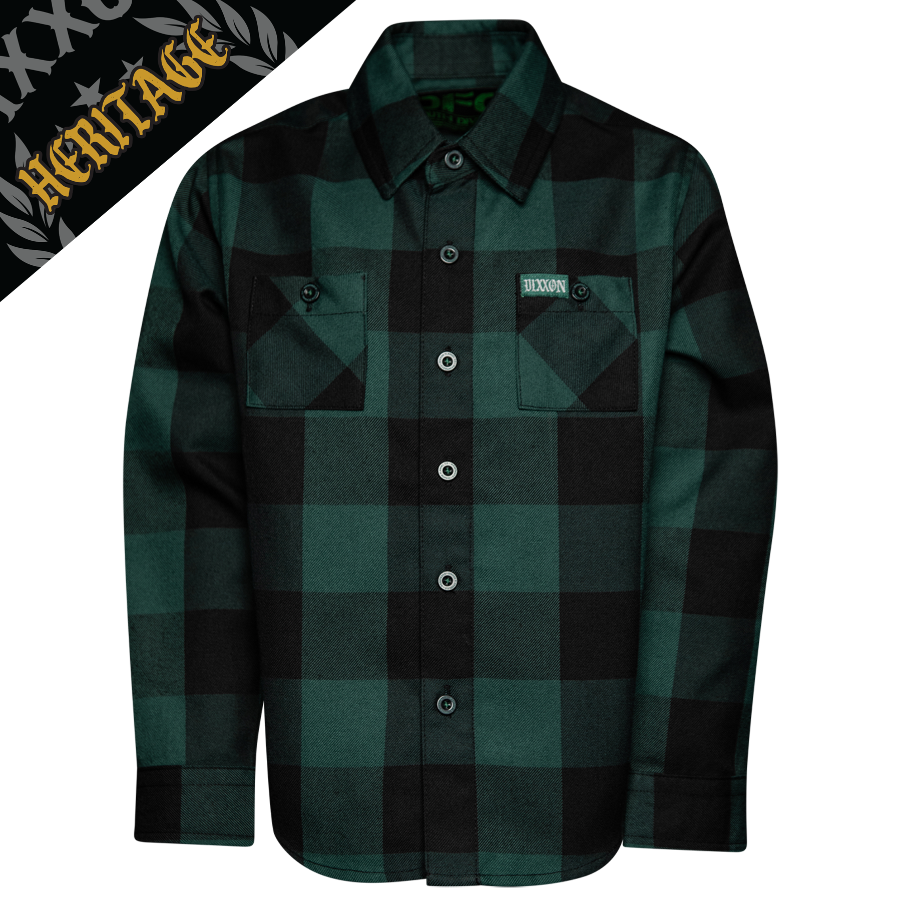 Classic and adventure-ready, the Youth Evergreen Heritage Flannel delivers a bold green and black buffalo check pattern with all-day comfort. Built from our signature D-Techª blend, it's durable enough for endless play and timeless enough to wear anywhere.