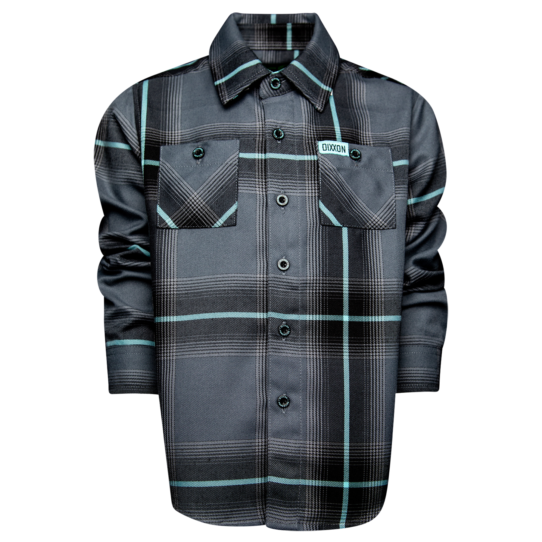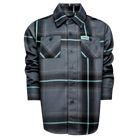 Built tough for the next generation, the Youth Powerline Flannel delivers everyday durability with a bold edge. The grey and black plaid is electrified with turquoise accents for a look that's both rugged and fresh.
