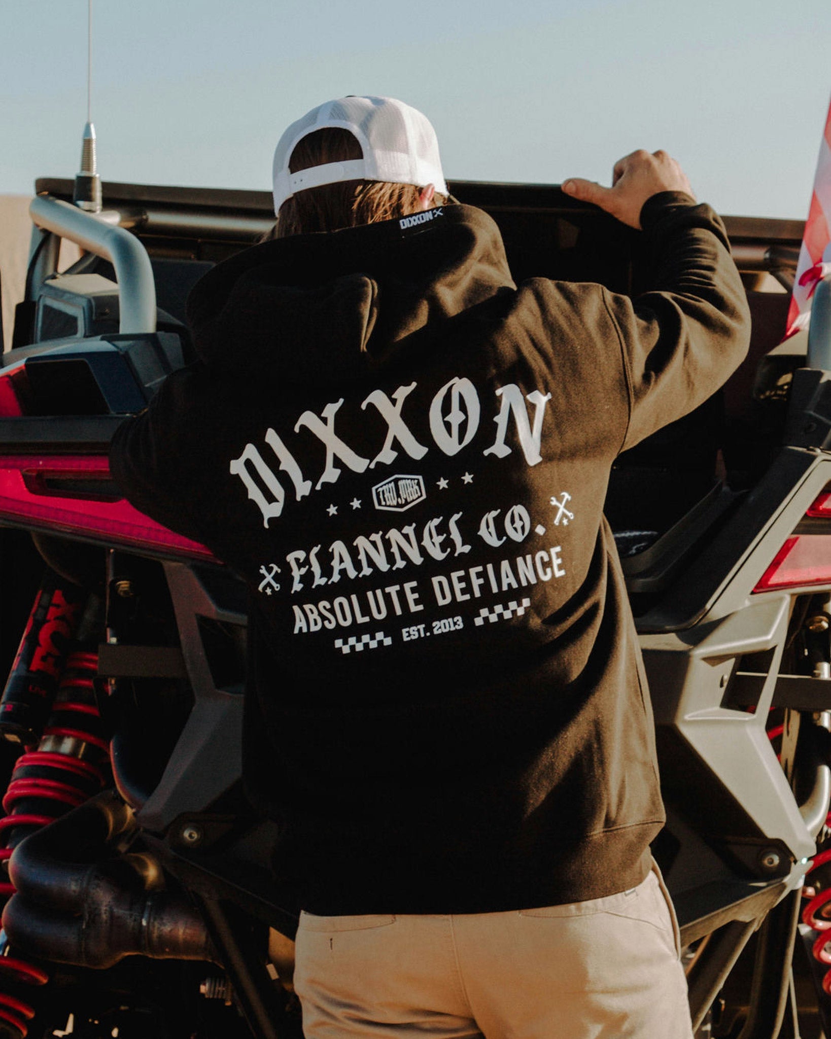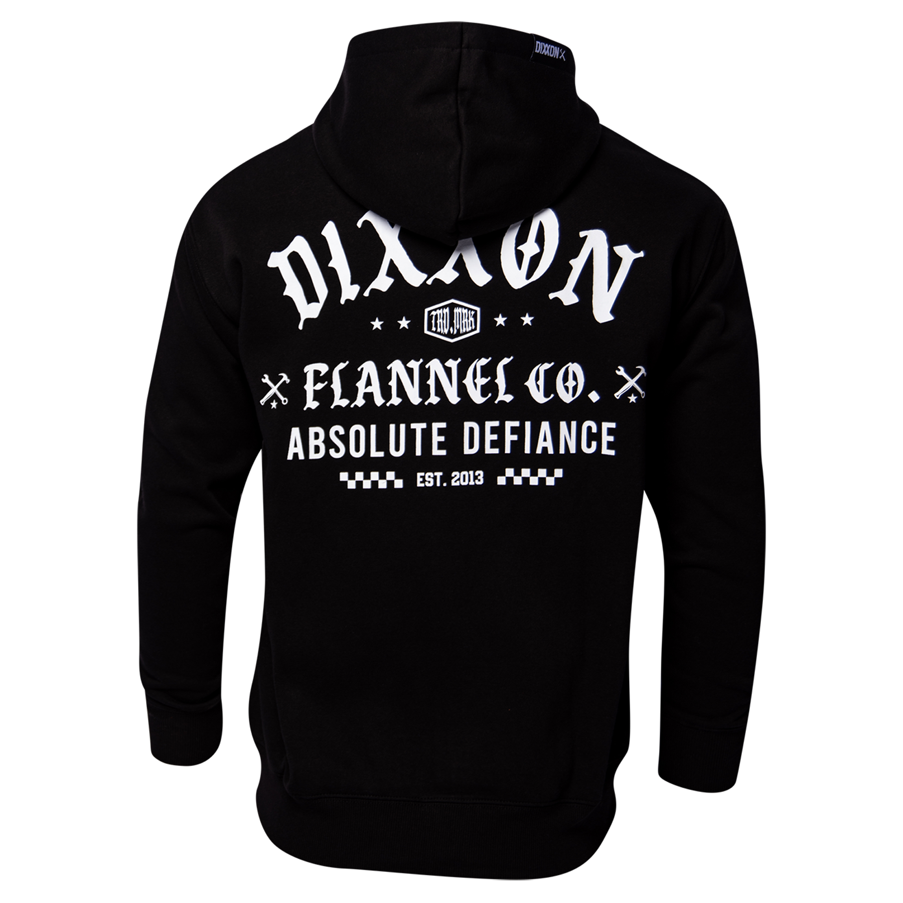 • White "ABSOLUTE DEFIANCE" text graphic graphic screen-printed on the left chest and back