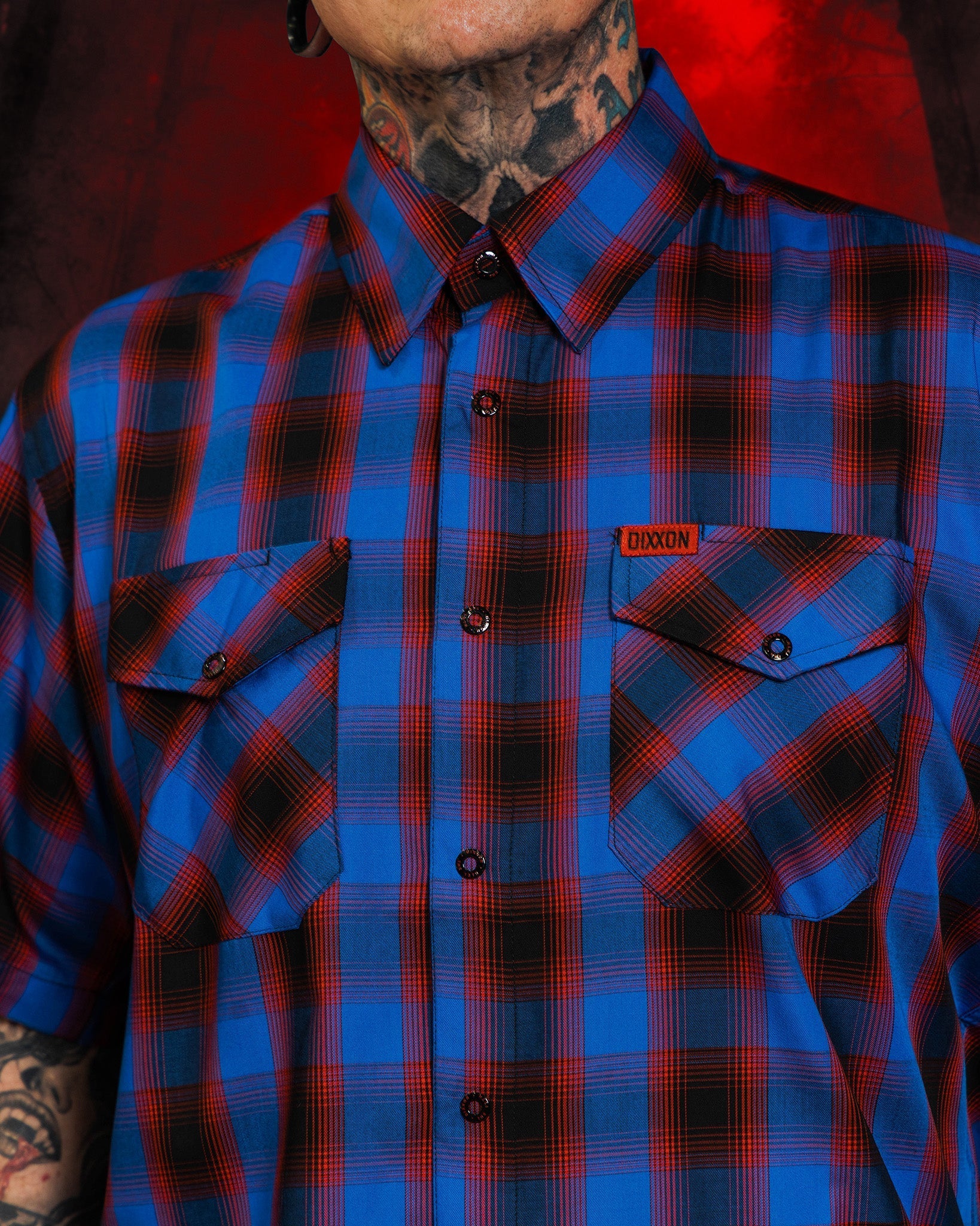 A killer combo of comfort and creep factor, The 13th Bamboo Short Sleeve is here to slay. Inspired by the iconic horror franchise, this blue, red, and black plaid button up keeps things bold with snap button closures and a soft, breathable feel. Built from our signature bamboo blend, it's finished with a wrinkle and shrink resistant treatment for durability that never dies. Perfect for final boys, final girls, and everyone in between.