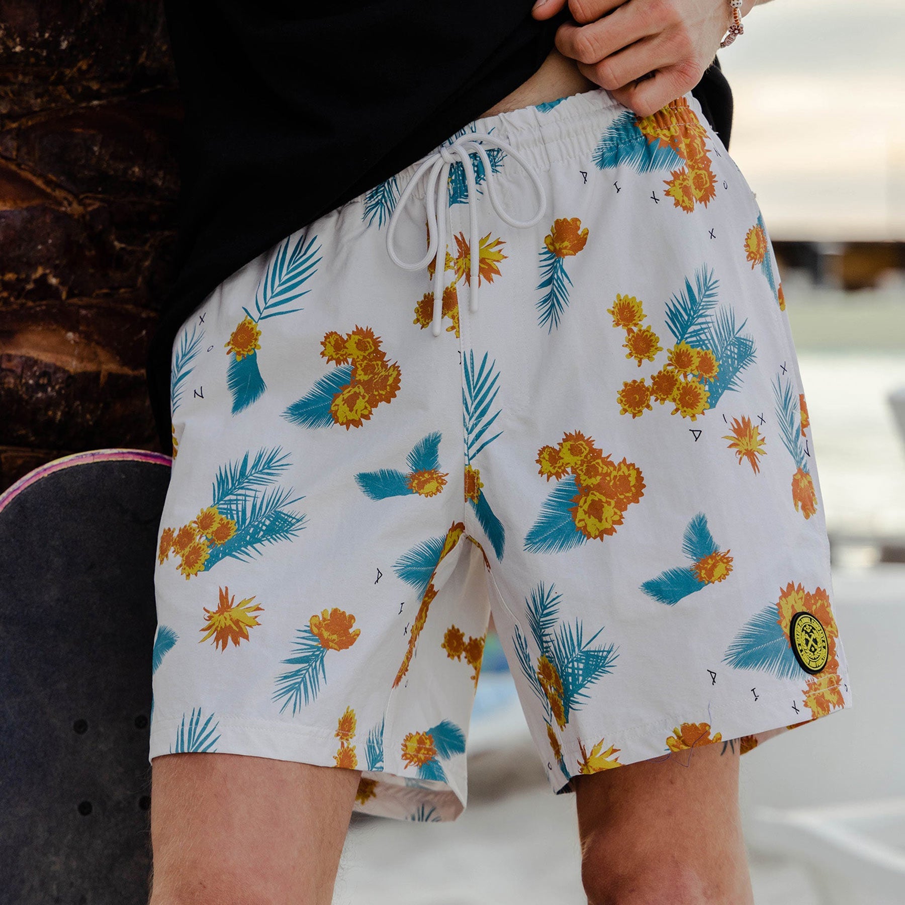 Step up your beach game with the Castaway 7" Boardshorts, crafted for comfort, style, and all-day wear. These lightweight, breathable trunks feature a slightly shorter cut for a more athletic, modern look, perfect for everything from catching waves to chilling on the sand. Made with quick-drying fabric and designed with performance in mind, they feature a 7" inseam, faux fly, and dual mesh pocket bags. A heat-sealed side zipper pocket with key keeper and rear Velcro pocket add just the right amount of utility, whether you're in the water or out exploring.