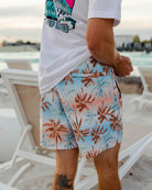 Step up your beach game with the 7" Golden Hour Boardshorts, crafted for comfort, style, and all-day wear. These lightweight, breathable trunks feature a slightly shorter cut for a more athletic, modern look, perfect for everything from catching waves to chilling on the sand. Made with quick-drying fabric and designed with performance in mind, they feature a 7" inseam, faux fly, and dual mesh pocket bags. A heat-sealed side zipper pocket with key keeper and rear Velcro pocket add just the right amount of utility, whether you're in the water or out exploring.