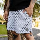 Step up your beach game with the Royal Palms 7" Boardshortsâ crafted for comfort, style, and all-day wear. These lightweight, breathable trunks feature a slightly shorter cut for a more athletic, modern look, perfect for everything from catching waves to chilling on the sand. Made with quick-drying fabric and designed with performance in mind, they feature a 7" inseam, faux fly, and dual mesh pocket bags. A heat-sealed side zipper pocket with key keeper and rear Velcro pocket add just the right amount of utility, whether you're in the water or out exploring.