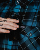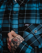 Forged from the depths of heavy riffs and crashing waves, the Parkway Drive - Deep Blue Flannel is built for those who never back down. Designed in collaboration with the iconic Aussie metalcore band, this button up blends boldness with everyday grit. Finished with our signature D-Tech blend for wrinkle and shrink resistance, the Deep Blue is as unshakable as the breakdowns that inspired it.
