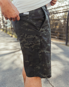 Made for the land, yet ready to battle the sea, these shorts are the perfect combination of form and function. The lightweight and breathable fabric features an allover black camo colour, while added belt loops allow you to dress up or down. Two front slash pockets and two at the rear create ample storage space for all your daily essentials and the moisture-wicking, quick-drying material is ideal for ensuring a dry ride home every time.