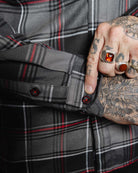 A decade in the making. The Boneless 10 YR Flannel pays tribute to a true classic of the Dixxon lineup. A timeless tonal black grey blend with a stand out red finished with faceless snap closure, this anniversary edition honours a decade of grit, loyalty, and built-to-last style.