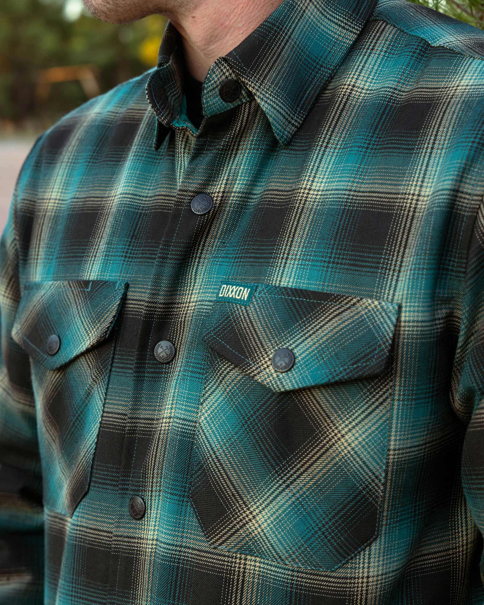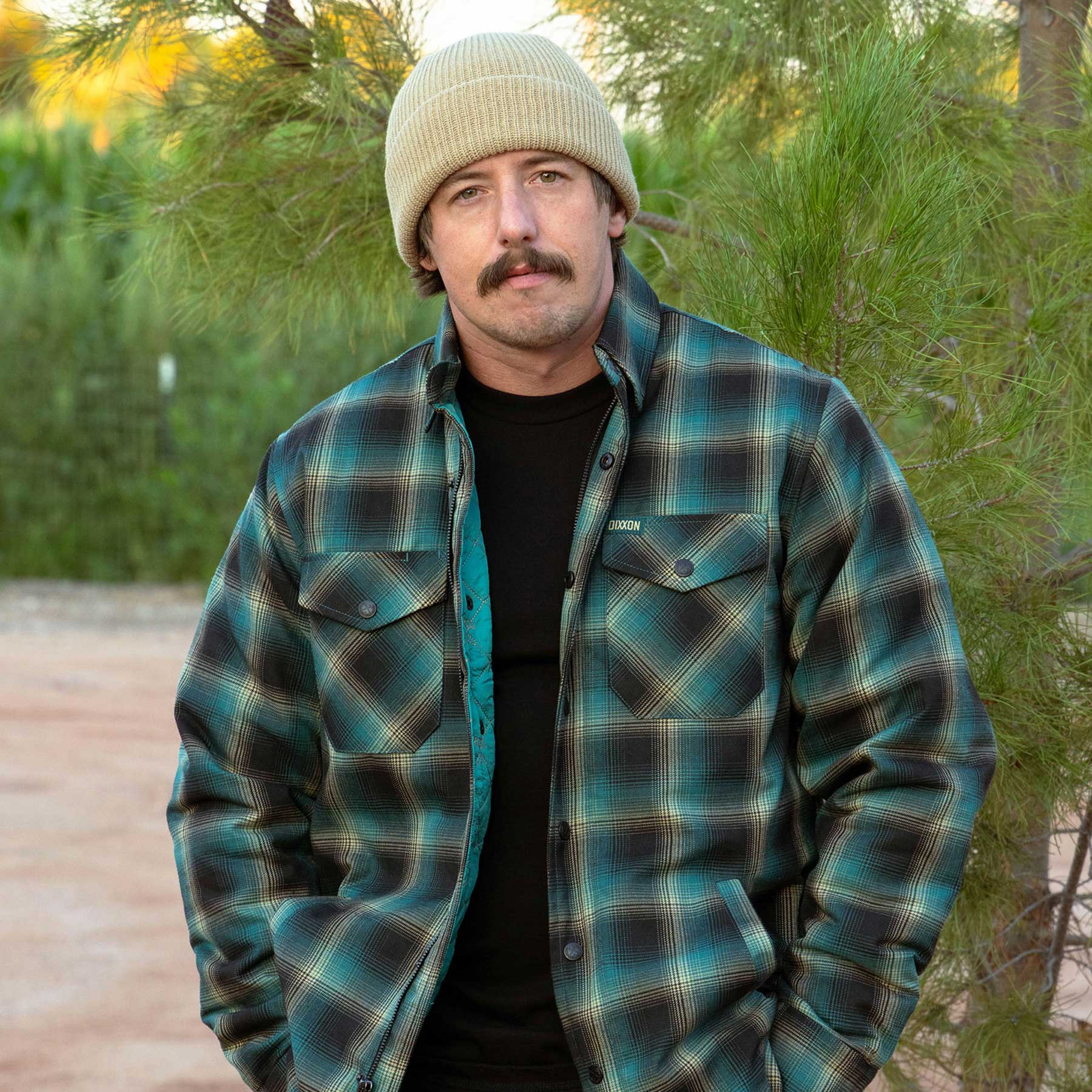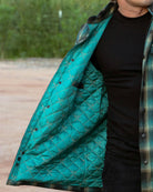 Shadowy and sharp, the High Country Quilted Flannel Jacket pairs a Turquoise Blue, black, and tan plaid exterior with a diamond-stitched quilted liner for warmth without bulk. Built for long days and late nights, its wrinkle-resistant shell and work-ready details make this your go-to layer.