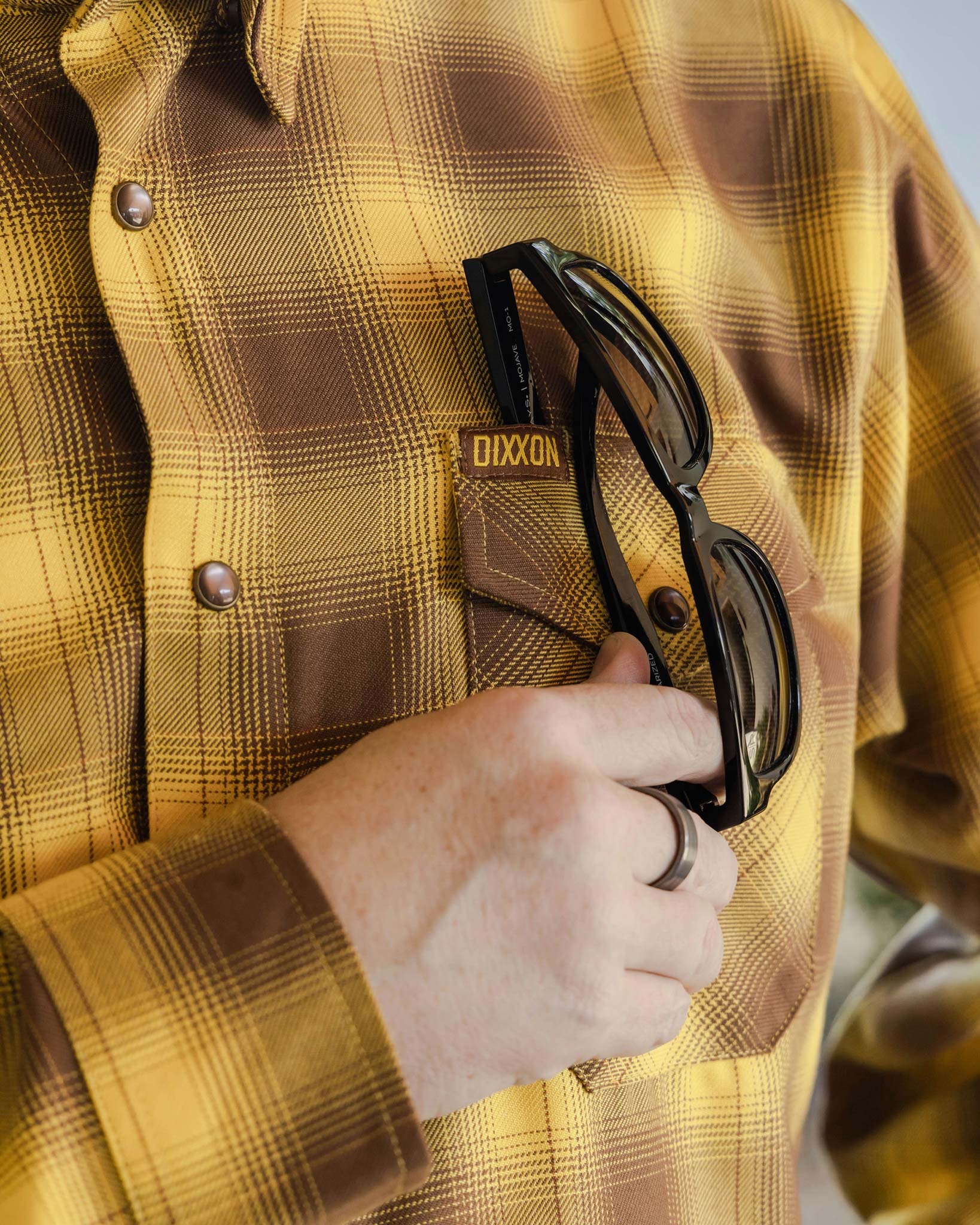 Traditions, legacy, and the beauty everywhere in between. Family memories of americas favorite pastime and doing it all with an incredible cause attached. This one is about COMMUNITY. The Friar Flannel is a heartfelt tribute to strength, resilience, and the bonds that carry us through life's toughest battles. Featuring a rich gold and brown plaid pattern with snap button closures, this timeless piece blends Dixxon's heritage style with a meaningful message. Designed for comfort, built for durability, and made to be worn with pride.