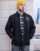 For the perfect lightweight layer to rock on your next ride, look no further than the Tradition of Rebellion Coaches Jacket. Custom built from the ground up, this snap front jacket is reminiscent of the old school styling without the slim fit to facilitate easy layering. An adjustable drawstring waistband and elastic cuffs keep out the cold, while the water-resistant shell and lined interior help to ensure you'll stay nice and dry.