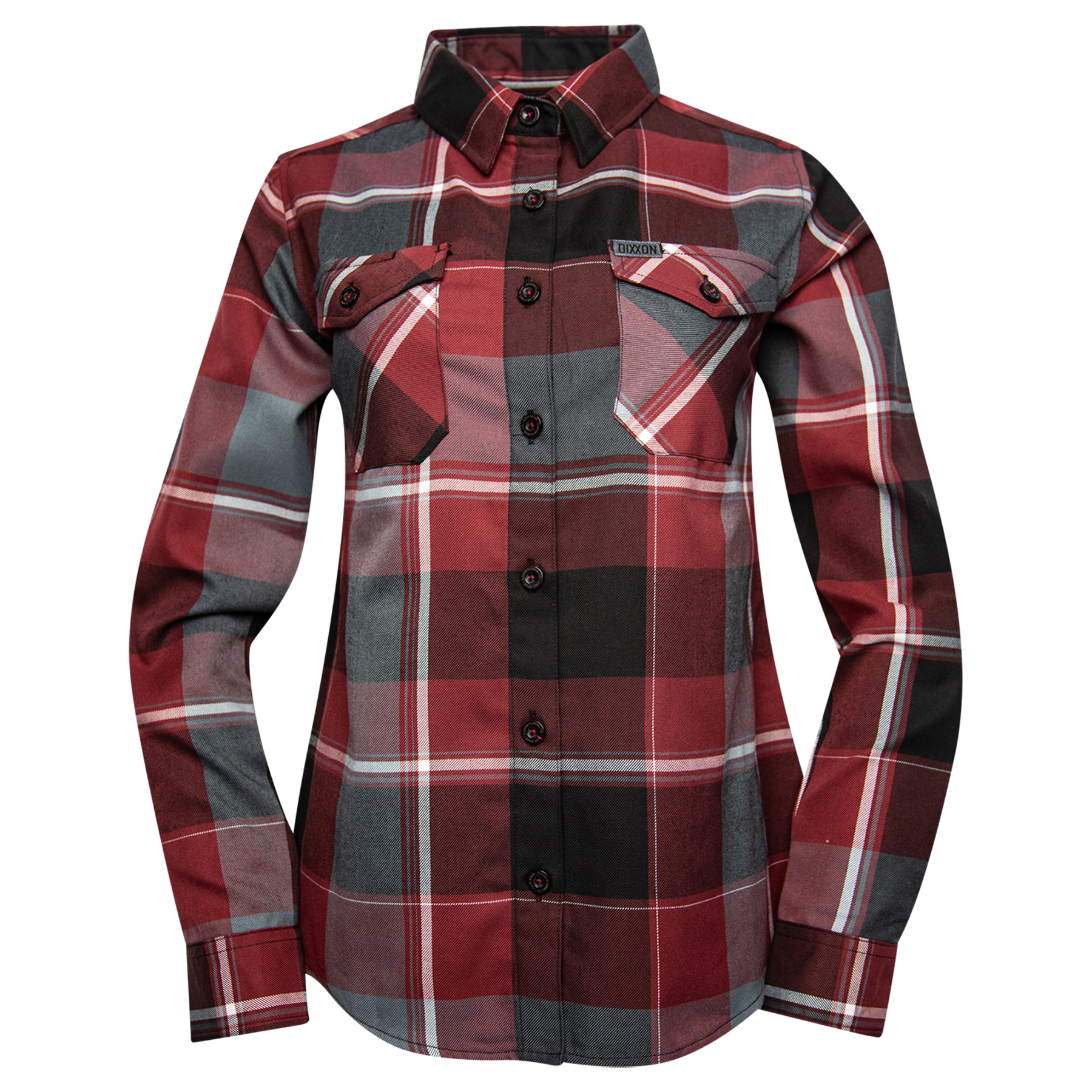 Pulling inspiration from brick, steel, and skyline glow, the Women's Brick City Flannel brings a red, grey, black, and white plaid that feels both gritty and put-together. Built with a heritage workwear attitude and everyday comfort, this button-front staple moves with you through long shifts, late plans, and everything in between.