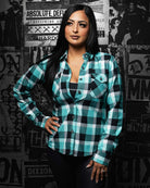 The Women's Chain Reaction Flannel features an allover blue, black and white plaid pattern that offers an eye-catching design, while our signature D-Tech™ blend provides the comfort of soft to the touch flannel. Constructed to be breathable for the performance you demand, yet durable for the rugged lifestyle you live.