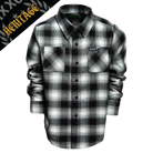 • Kid's black, white, and grey plaid patterned flannel shirt