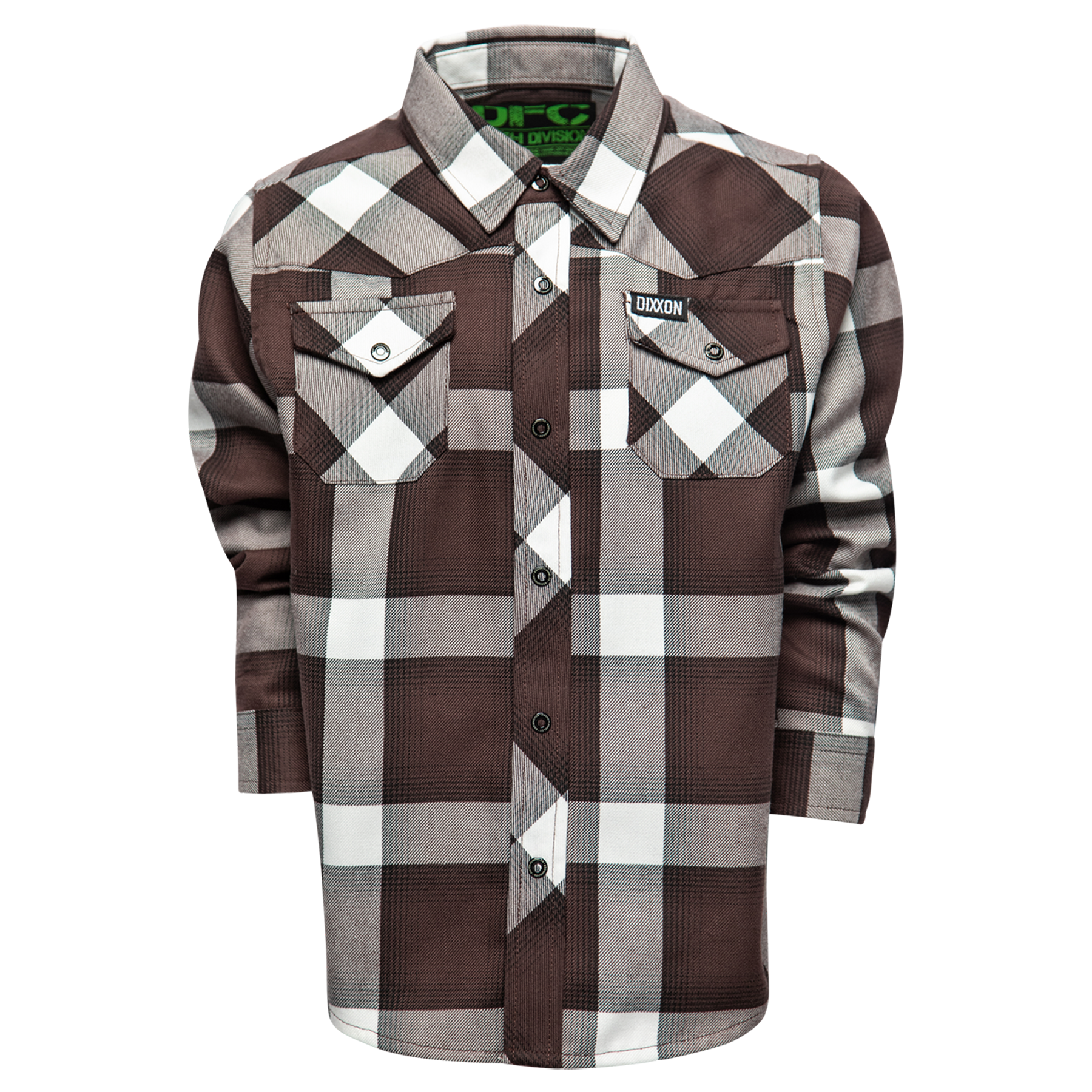 The Youth Roughrider Flannel features an allover brown, white, and grey plaid pattern that offers a clean and classic design, while our signature D-Tech™ blend provides the comfort of soft to the touch flannel. Constructed to be breathable for the performance your little ripper demands, yet durable for the action-packed life they live.