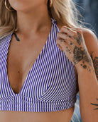 Women's Bombshell Bikini Top - Blue & White Stripe