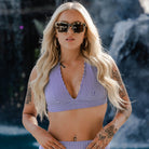 Turn heads and break necks in the WomenÕs Bombshell Bikini Top from Dixxon. Styled with wide, supportive straps and a thick under bust band for a secure, sculpted fit, this halter-style top delivers bold coverage and confidence. Complete with a plunging neckline, adjustable tie-back closure, and soft-stretch fabric that moves with you, the Bombshell is made for everything from tanning to cannonballs.