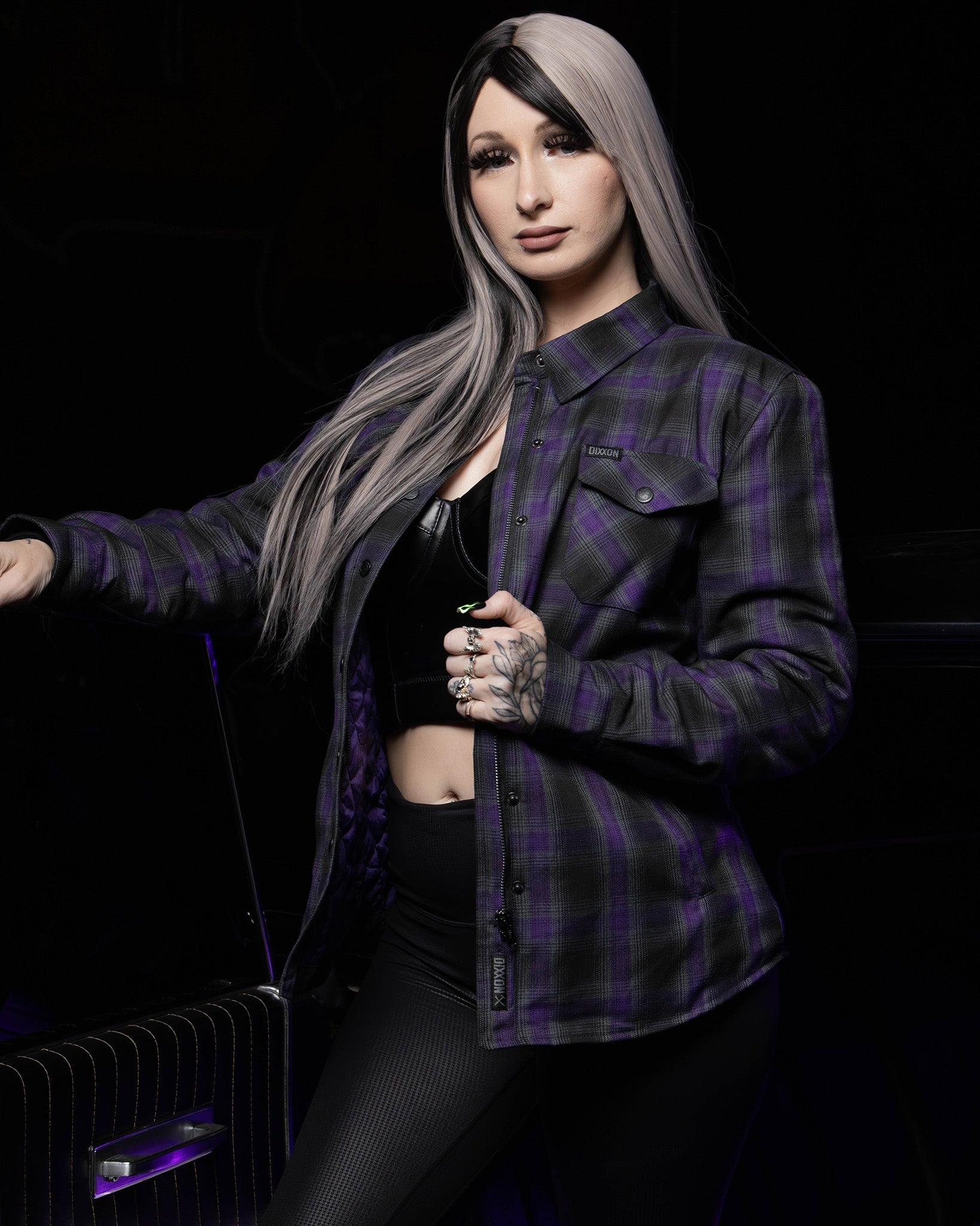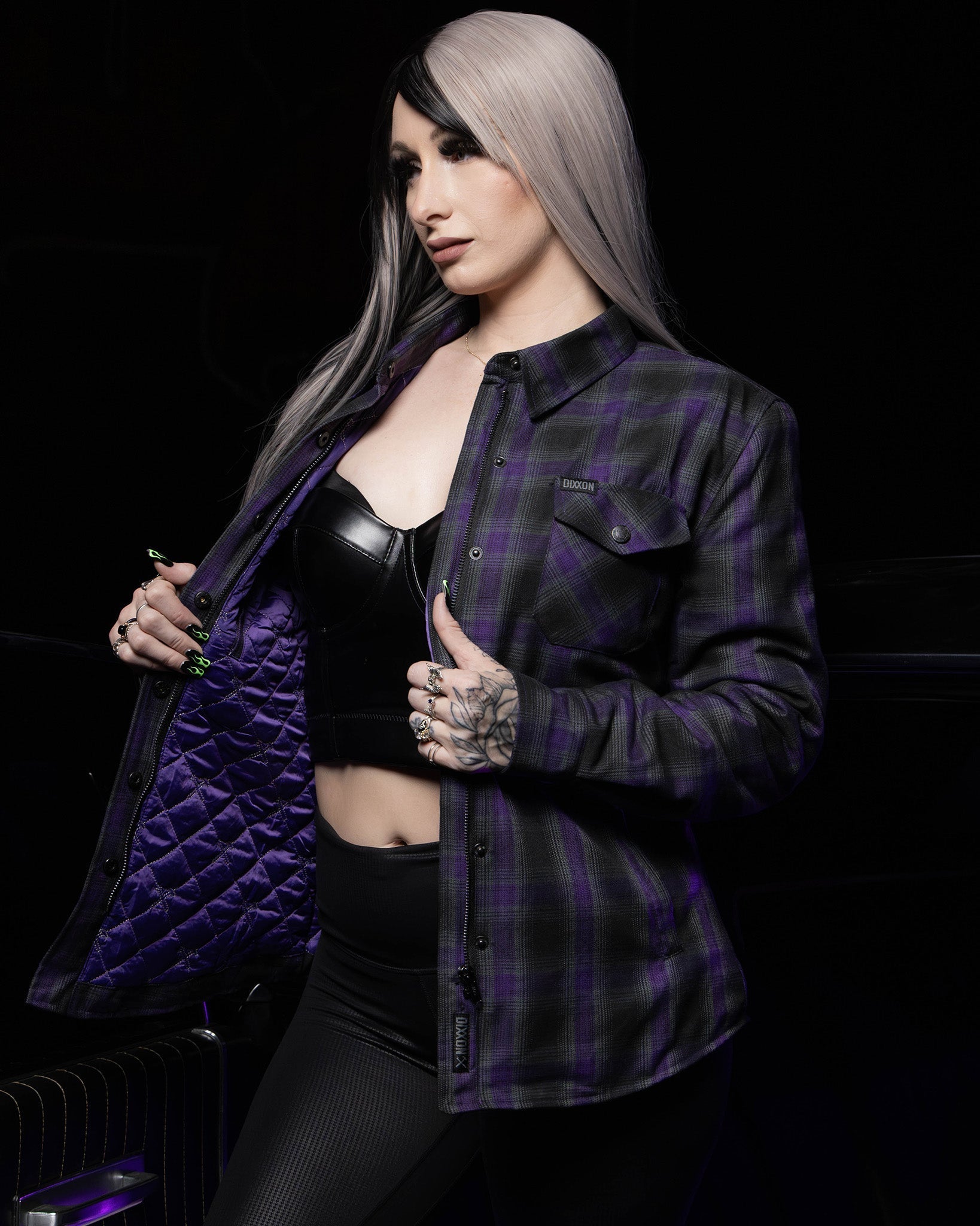 Shadowy and sharp, the Women's Forum Quilted Flannel Jacket blends a black, grey, and purple plaid exterior with a diamond-stitched liner for cozy warmth without the bulk. A wrinkle-resistant shell and work-ready details make it an easy everyday layer.