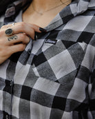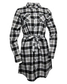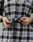 Modern structure meets classic comfort with the Mickey Dress. Crafted from soft black and white plaid flannel, this shirt-inspired silhouette features a full button-up front, dual chest flap pockets, and a removable self-tie belt to cinch it your way. Designed to take you from laid-back days to nights out, this versatile staple delivers effortless edge with just the right touch of polish.