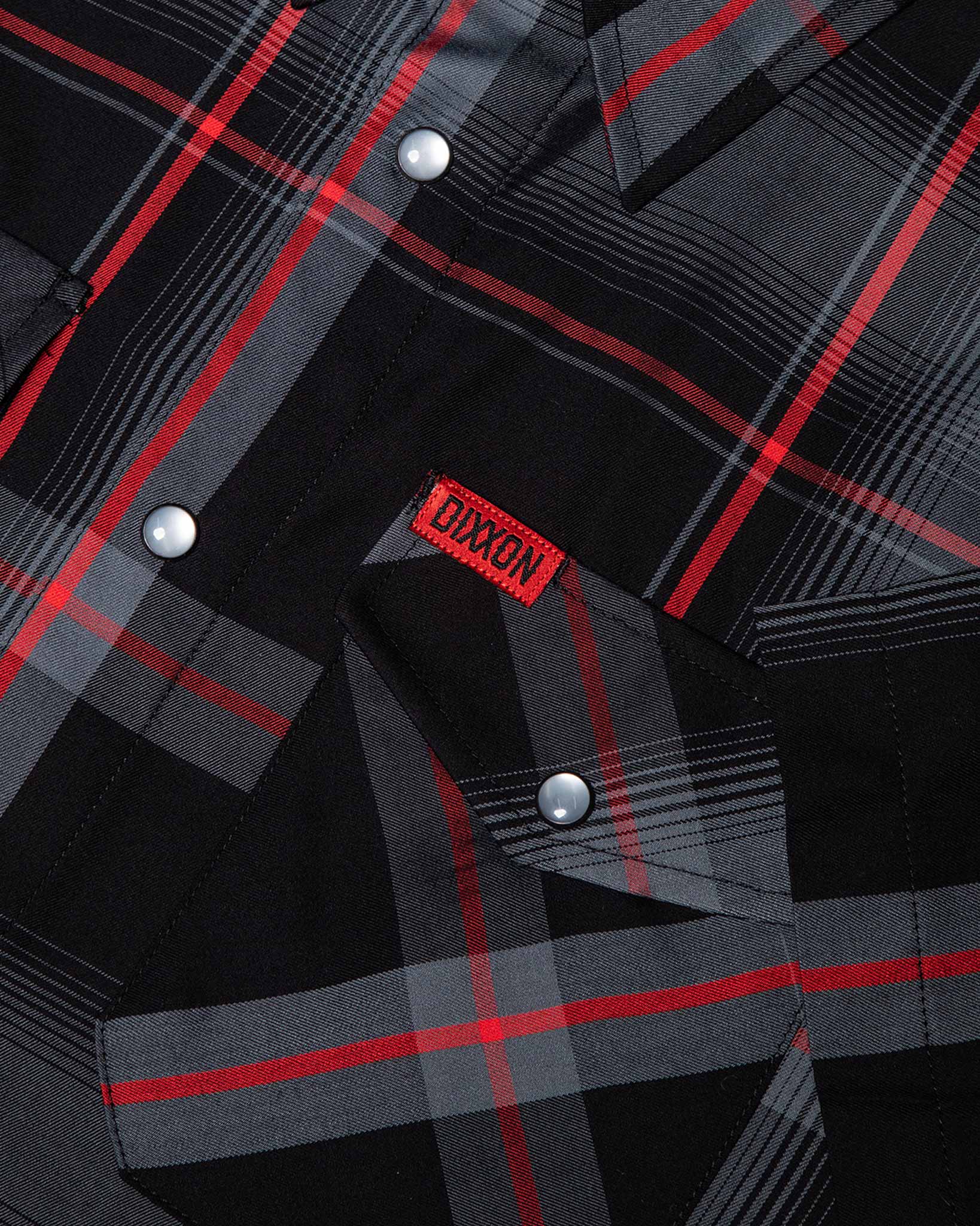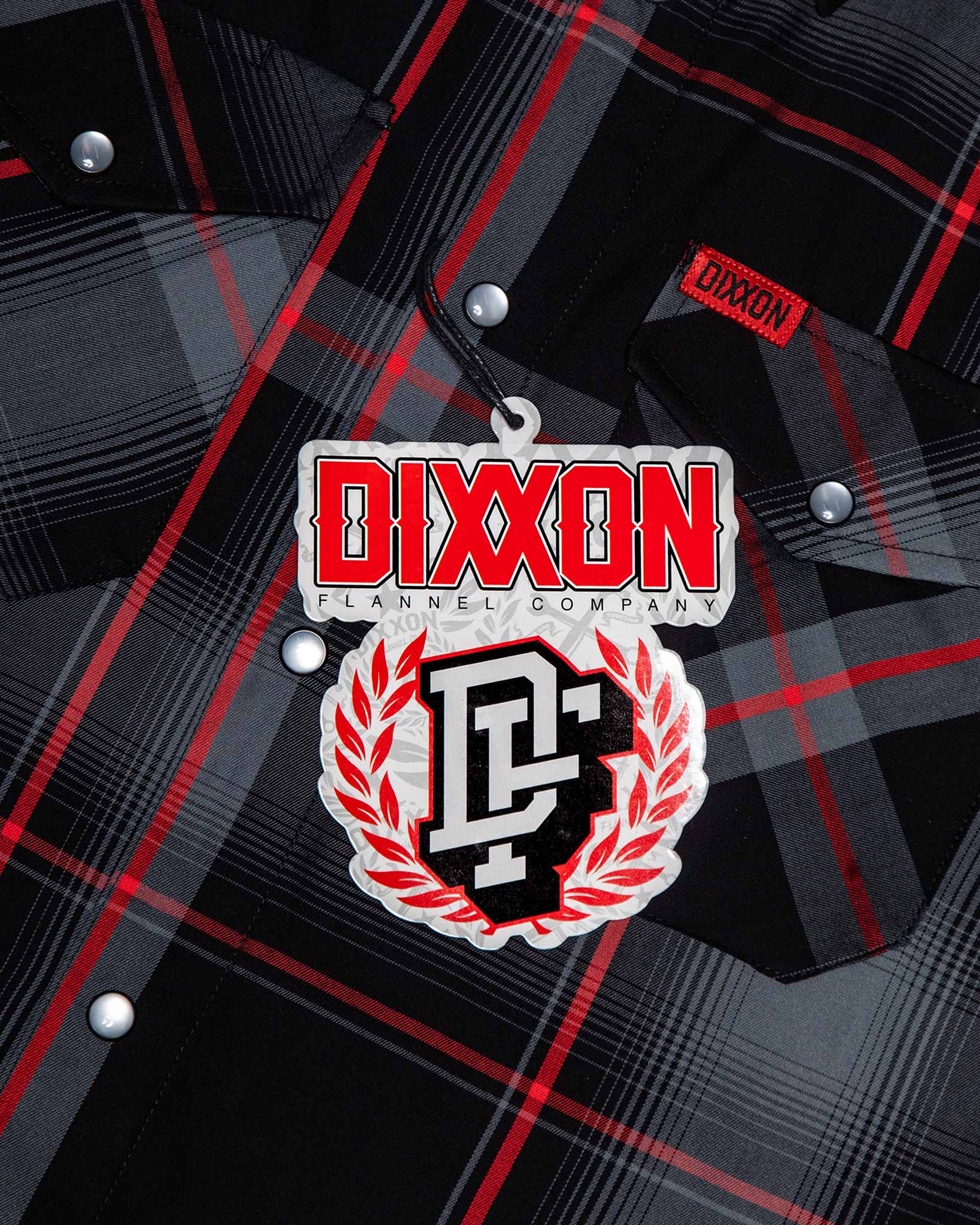 • Black and red Dixxon brand tag on the left chest pocket