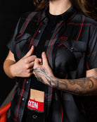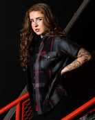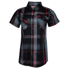 • Women's black, red and grey plaid patterned short sleeve bamboo shirt
