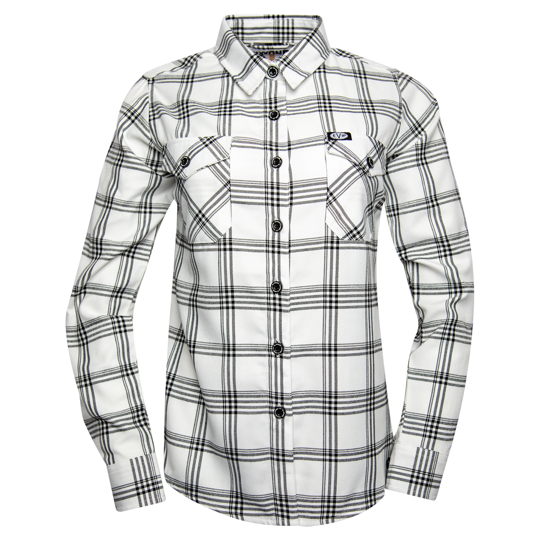 Channel the power of Eddie Van Halen with the Women's 'Super '78' Flannel. Built with Dixxon's signature heritage details, this collab is made to move with you while delivering high-impact style. A timeless black-and-white plaid meets rock-and-roll attitude in a piece designed for women who set their own rhythm.