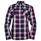 • Women's navy blue, red, and white plaid patterned long sleeve bamboo shirt