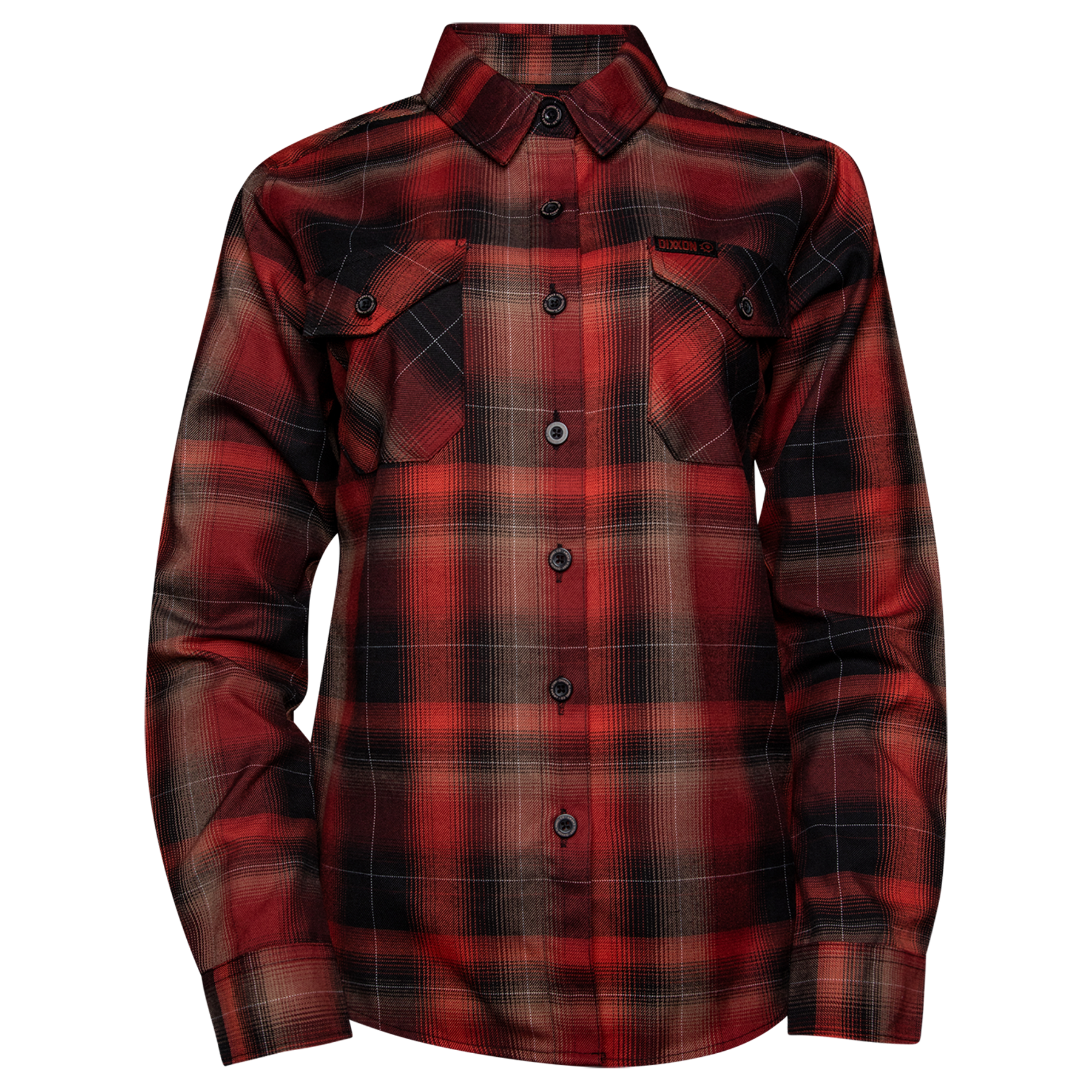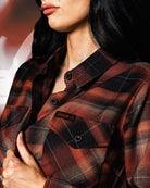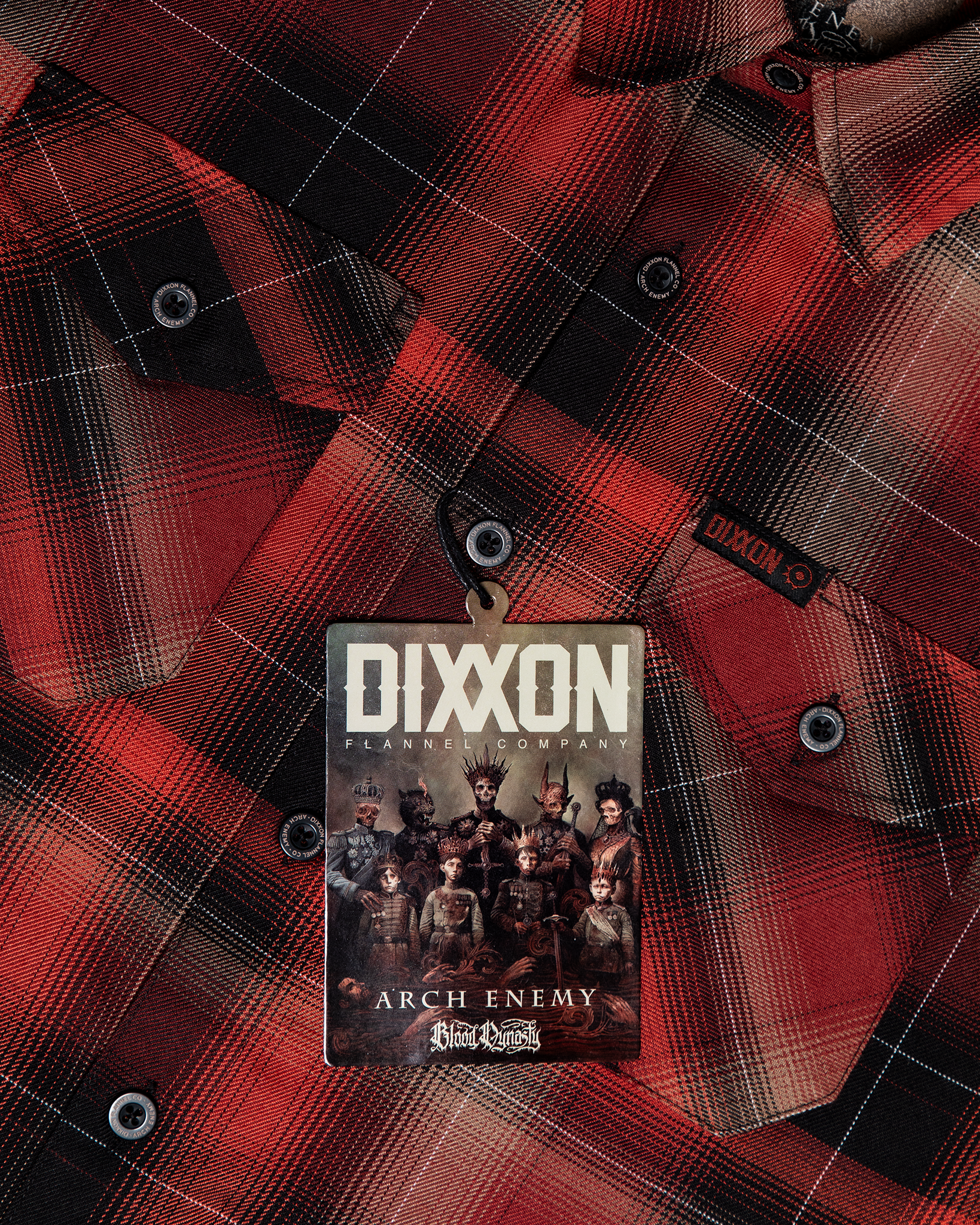 Heavy metal heritage meets everyday wear with the Women's Arch Enemy Blood Dynasty Flannel. Designed with a fiery red and black plaid, this collaboration captures the raw power of Arch Enemy while delivering comfort, style, and utility.