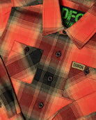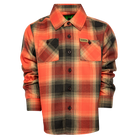 • Kid's orange, sand, and black plaid patterned flannel shirt