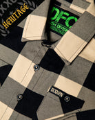 • Black and khaki Dixxon brand tag on the left chest pocket